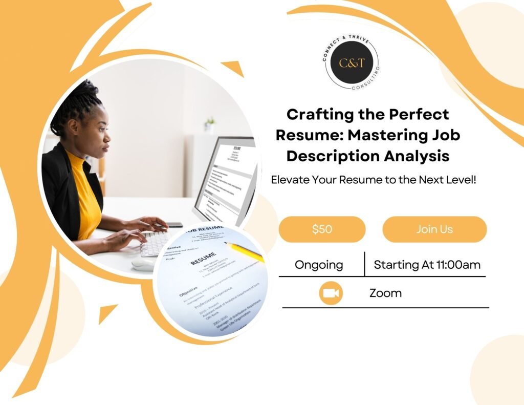 Attend our workshop on "Crafting the Perfect Resume: Mastering Job Descriptions" to learn essential techniques for tailoring your resume to highlight skills and experiences relevant to job descriptions.