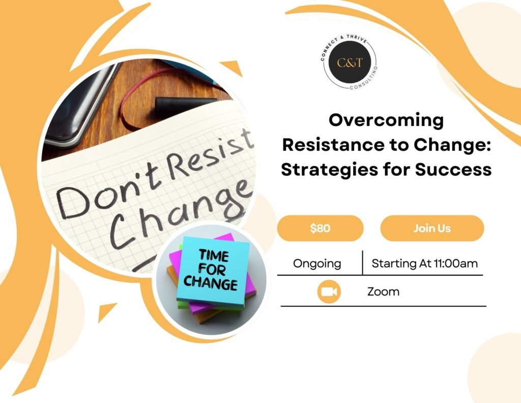 Join our workshop on "Overcoming Resistance to Change: Strategies for Success" to gain practical strategies for navigating and embracing organizational change, fostering resilience, and achieving professional growth.
